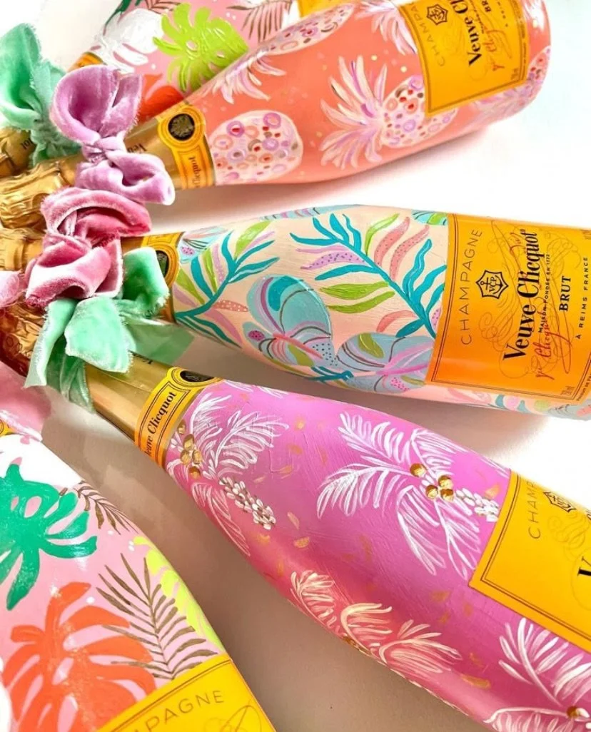 A champagne bottle experience. Sip while you paint your own custom bottle—perfect for celebrations, brides, birthdays, and keepsakes.